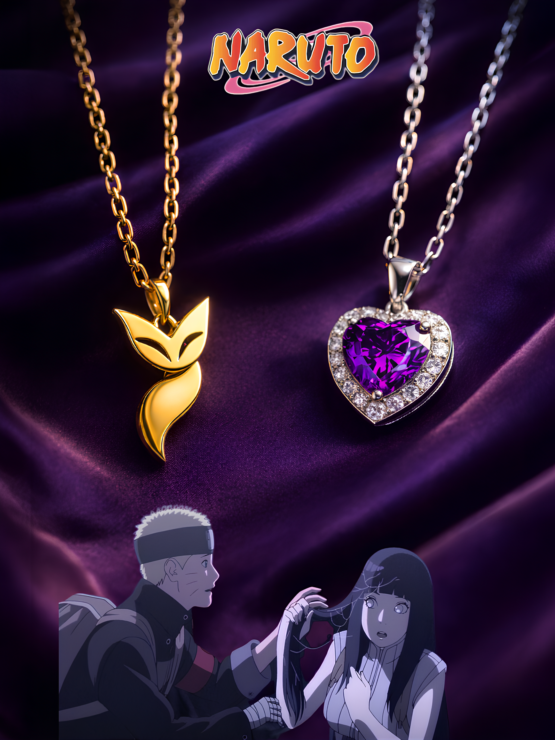 Inspired by the unbreakable bond between Naruto and Hinata, this necklace set blends iconic symbols and heartfelt elegance – a tribute to love, loyalty, and the journey you share.